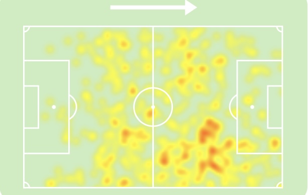 Oggi Carboni è quindi una seria opzione per Palladino anche da titolare e il tecnico lo impiega stabilmente nella coppia – di solito insieme a Colpani – dietro all’unica punta, che ieri era Djuric e spesso è Colombo, allì’interno del consueto 3-4-2-1. Di Carboni, l’allenatore apprezza sicuramente la tecnica individuale, un mancino da sogno e la sfacciataggine nel provare conclusioni a prima vista improbabili (ricordate quella nel finale contro la Juventus da 30 metri?), oltre al coraggio nel dribbling. L’argentino sa creare scompiglio fra le linee, si abbassa quando serve per cucire il gioco e attacca l’area avversaria il più delle volte partendo da destra, come dimostra la sua heatmap stagionale.