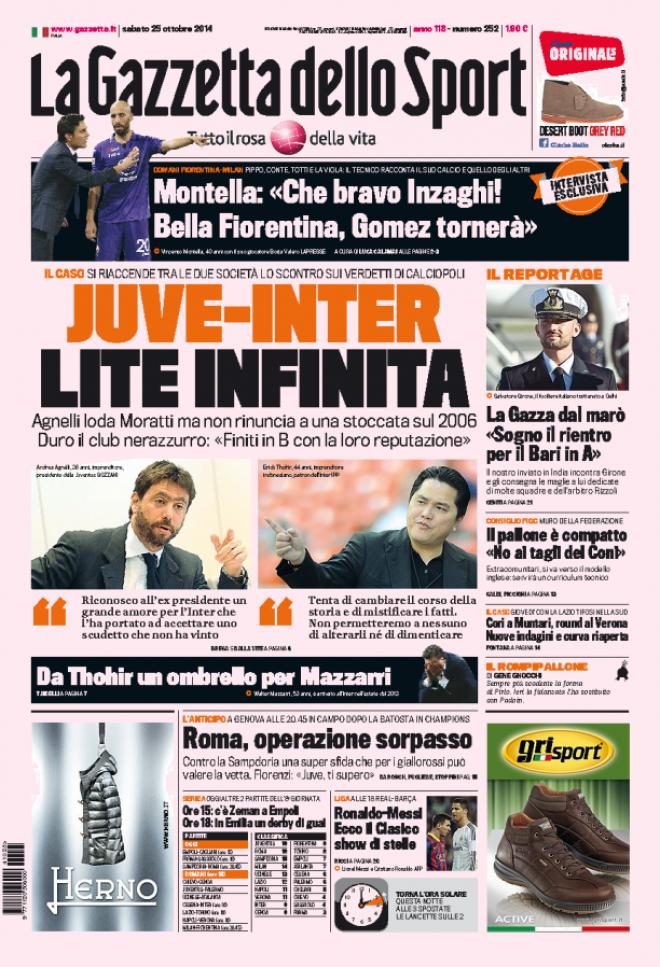 In Corso Vittorio Emanuele non deve essere andata giù la frecciata del presidente della Juventus, Andrea Agnelli, che ha attaccato i nerazzurri in seguito alle dimissioni di Massimo Moratti da presidente onorario con dure parole che hanno riacceso la rivalità tra i due club: “L’uscita di Moratti credo sia un fatto tecnico, le vedute diverse si erano manifestate nel tempo. Credo che gli vada riconosciuto un grandissimo amore per la sua Inter e il grandissimo amore può portare a compiere alcune follie come accettare uno scudetto che non ha vinto“, queste le parole del presidente bianconero.