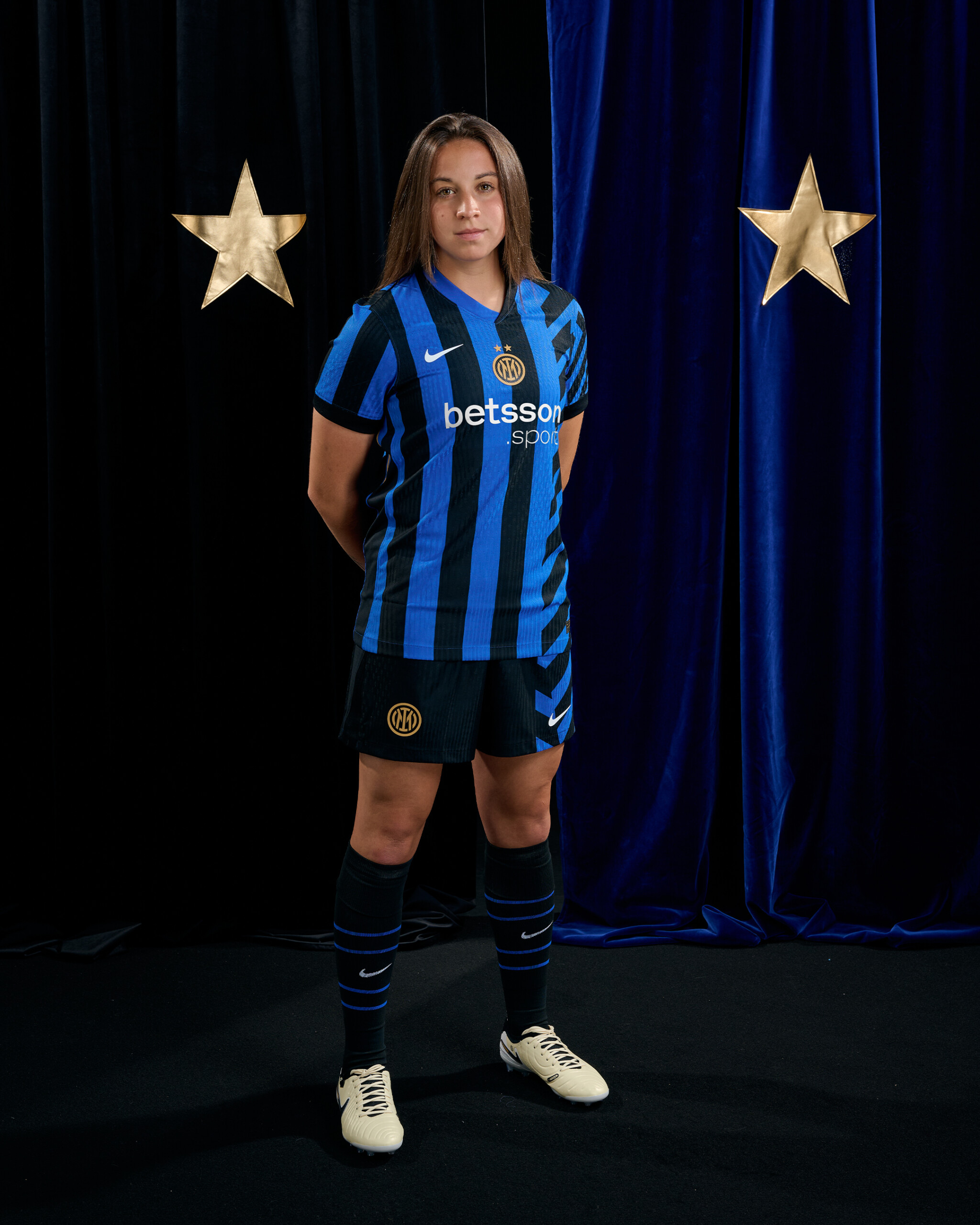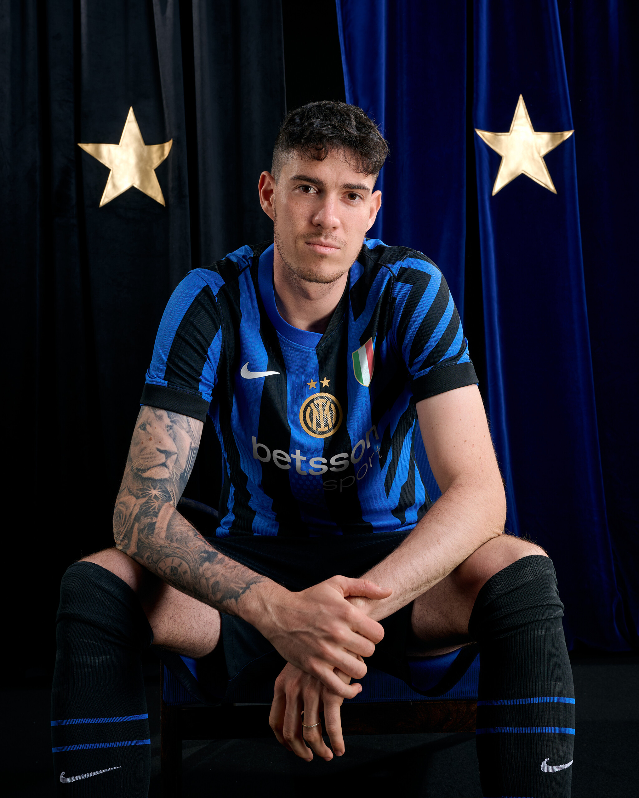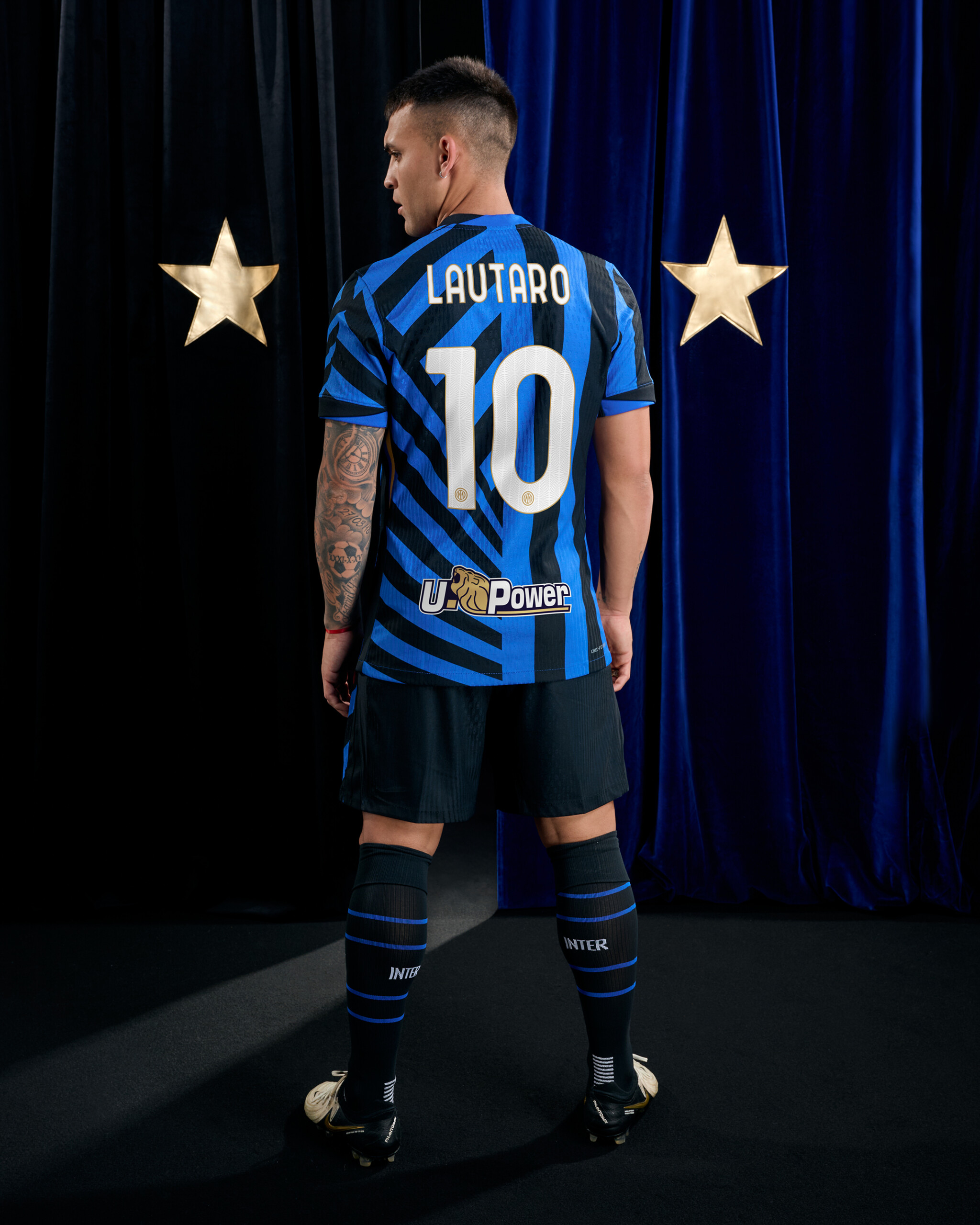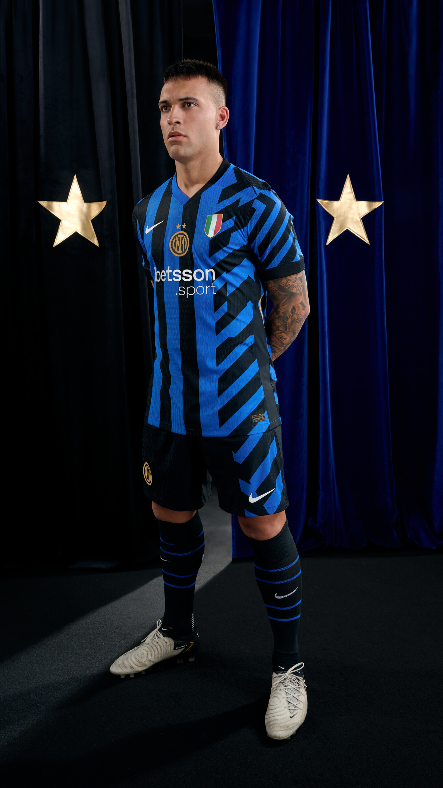 Il logo dell’Inter, per la prima volta nella versione con le due stelle, si trova cucito al centro della maglia, affiancato sul lato sinistro dal tricolore. Il front della maglia vede inoltre l’esordio di Betsson Sport, nuovo Official Main Partner, mentre sul retro prosegue la collaborazione con U-Power, Official Back Jersey Partner del Club.