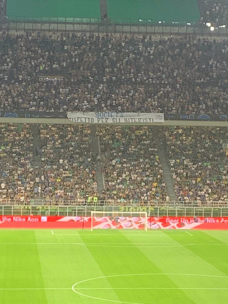 Inizio abbastanza surreale a San Siro, con la Curva Nord dell’Inter che è rimasta in silenzio nei primi minuti di Inter-Monza, tenendo anche le bandiere e gli stendardi ammainati. Un segnale di contestazione nei confronti della società, come testimoniato anche dallo striscione esposto nei minuti antecedenti al calcio d’inizio.