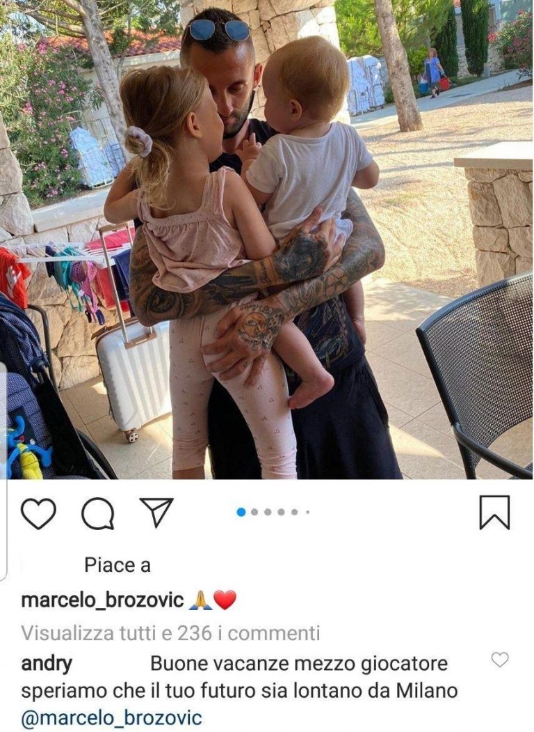 Che la stagione si sia conclusa con qualche difficoltà è sotto gli occhi di tutti. Marcelo Brozovic, però, ora dà spazio a polemiche e dubbi in merito al proprio futuro. Tra i commenti di una foto con i figli postata proprio dal croato, infatti, un tifoso ha scritto: “Buone vacanze mezzo giocatore, speriamo che il tuo futuro sia lontano da Milano”. E Brozovic, rispondendo all’utente, è stato lapidario: “Speriamo”, unito all’emoji che ormai l’ha reso famoso. Ecco qui di seguito il suddetto post.