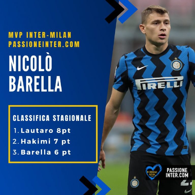Nonostante la sconfitta nel derby contro il Milan, tra le fila dell’Inter c’è chi ha ampiamente salvato la propria prestazione ben oltre la sufficienza. I tifosi nerazzurri, infatti, hanno votato come MVP PassioneInter dell’incontro Nicolò Barella, facendo schizzare in classifica il centrocampista al terzo posto. Primi tre punti in stagione per Romelu Lukaku, mentre Hakimi si conferma il più costante e con un punto si mantiene al secondo posto.