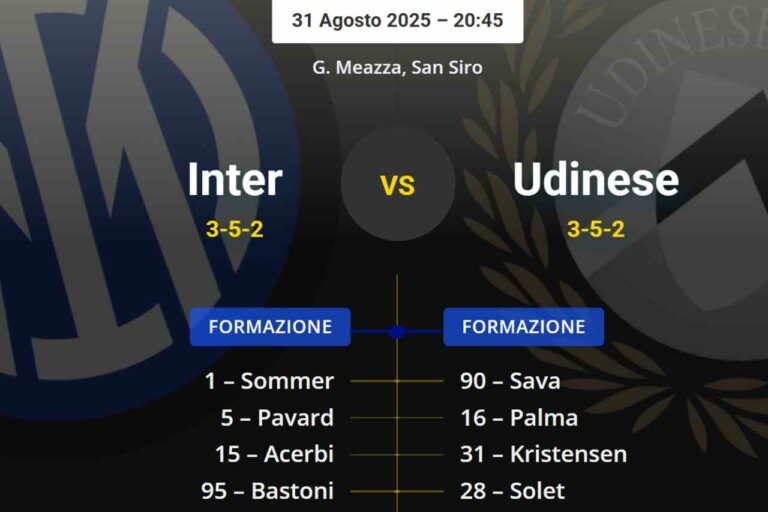 Dopo gli ottimi segnali trasmessi alla prima giornata contro il Torino, l’Inter si prepara per tornare in campo a San Siro contro l’Udinese (qui le info su dove vedere Inter-Udinese). Rispetto alla prima formazione schierata da Cristian Chivu al debutto in campionato, ci aspettiamo poche modifiche in quello che sarà l’ultimo turno prima della sosta per le Nazionali di settembre.