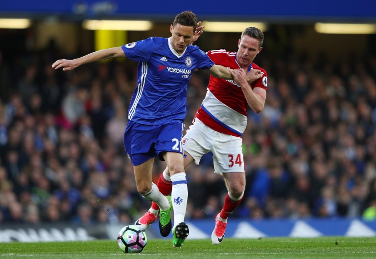 LONDON, ENGLAND - MAY 08: Nemanja Matic of Chelsea and Adam Forshaw of Middlesbrough during the Premier League match between Chelsea and Middlesbrough at Stamford Bridge on May 8, 2017 in London, England. (Photo by Ian Walton/Getty Images)