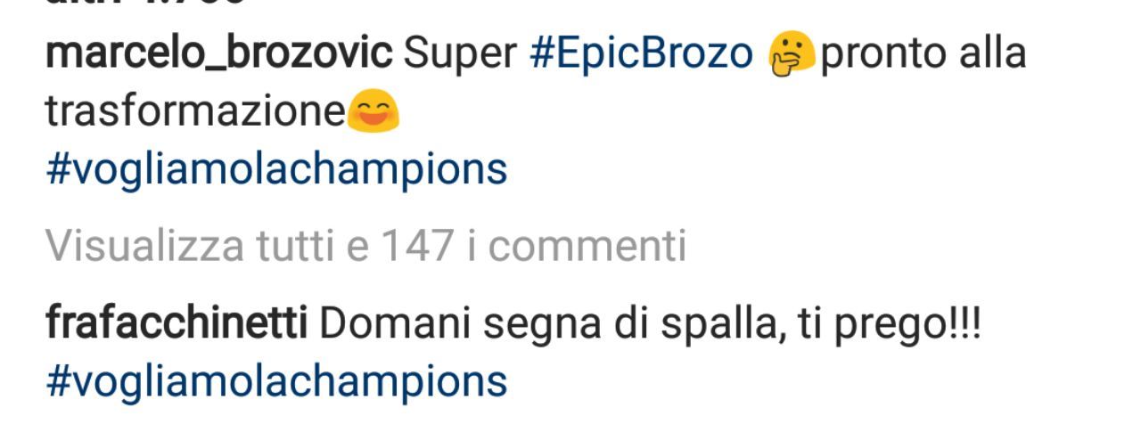 Marcelo Brozovic, centrocampista dell’Inter, dopo la sfida contro il Cagliari e il suo gol, ha iniziato a postare sui social, post con l’hashtag ‘vogliamo la champions’ e sue foto dove si ‘caricava’ in vista della sfida contro il Chievo. L’ultimo post è apparso poco fa sul suo profilo Instagram è una foto di lui trasformato in Superman: “Super Epic Brozo pronto alla trasformazione“.