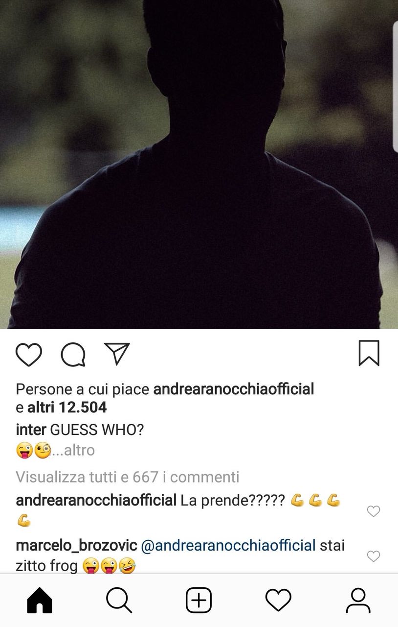 Luciano Spalletti ha ritrovato ad Appiano Gentile anche tre dei cinque nazionali. Sono ritornati Joao Mario, Joao Miranda e Matias Vecino dopo l’esperienza al Mondiale in Russia 2018. L’Inter ha pubblicato su Instagram una foto del centrocampista uruguaiano, dove non si vede il volto, e ha posto ai tifosi una domanda: “Indovina chi?“. Nei commenti sono apparsi Andrea Ranocchia e Marcelo Brozovic: il difensore ha cercato di dare un indizio ai tifosi nerazzurri scrivendo “La prende?“, riferito all’esultanza dopo il suo gol contro la Lazio che ha portato l’Inter in Champions League, mentre il croato non voleva dare indizi e ha ammonito Ranocchia scrivendo “Stai zitto frog“.