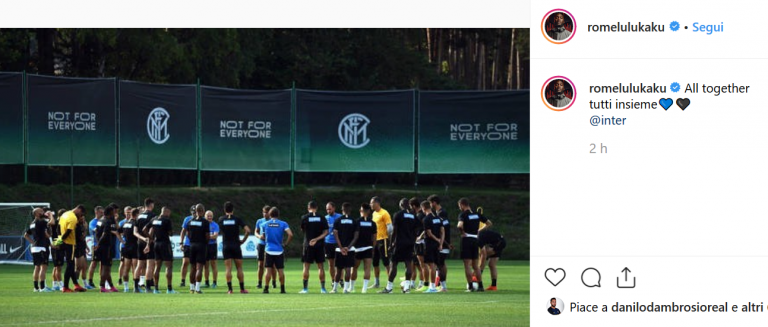 La descrizione di Romelu Lukaku al post è eloquente: “All together, tutti insieme”. Prima in inglese poi in italiano, parole accompagnate da due cuori nerazzurri che generano sempre più euforia nei tifosi in vista dell’esordio con il Lecce.