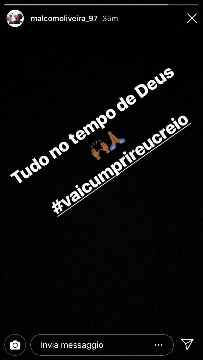 Il messaggio fa sognare i tifosi dell'InterInter che continua a muoversi sul mercato e dopo l’arrivo di Matteo Politano, ha intenzione di continuare a trattare Malcom, attaccante del Bordeaux. Il calciatore non si è presentato al ritiro del club, lanciando un chiaro segno di mercato, magari di volontà di trasferirsi in nerazzurro. Proprio riguardo il suo probabile trasferimento, ha lanciato un altro segnale, questa volta sui social, precisamente sul suo profilo ufficiale Instagram. L’attaccante brasiliano ha pubblicato una storia che lascia tutto all’interpretazione personale. Ecco cosa ha scritto: “Tutto nei tempi di Dio. Sta per succedere, credo“. Si riferisce al trasferimento in nerazzurro a qualche altro evento importante?