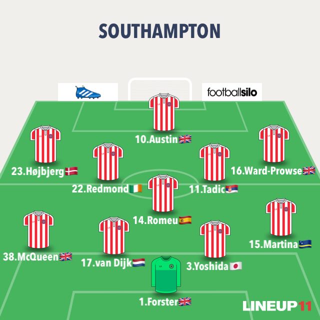 SOUTHAMPTON (4-1-4-1): Forster; Martina, Yoshida, Van Dijk, Mcqueen; Romeu; Ward-Prowse, Tadic, Redmond, Højbjerg; Austin. All.: Puel