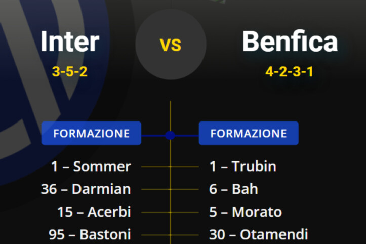 Inter-Benfica, le probabili formazioni: Inzaghi torna ai fedelissimi