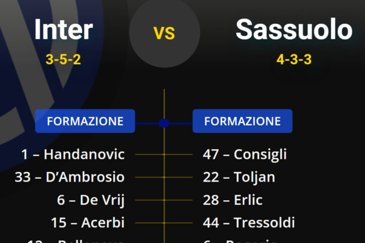 Inter-Sassuolo, le probabili formazioni: turnover massiccio in vista dell’Euroderby