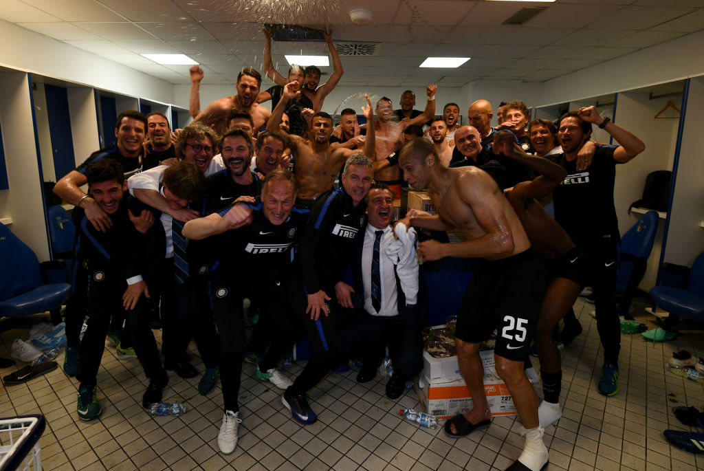 Inter in Champions, la festa negli spogliatoi dei nerazzurri