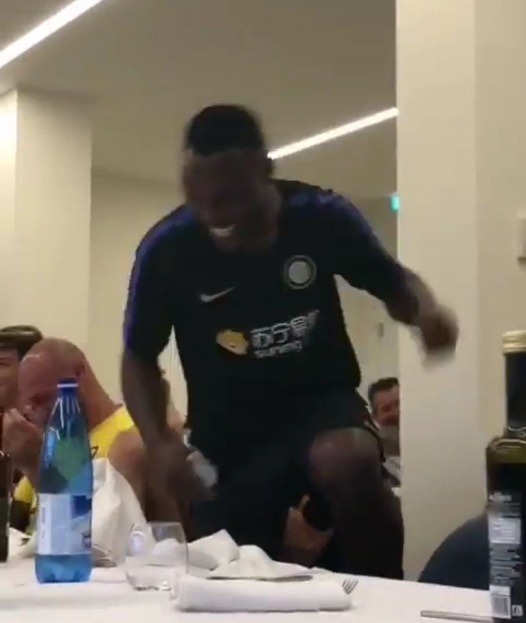 Anche per il terzino, Kwawdo Asamoah, è arrivato il momento di presentarsi ai compagni nel ritiro di Appiano Gentile sulle note di ‘Give me everything’ di Pitbull.