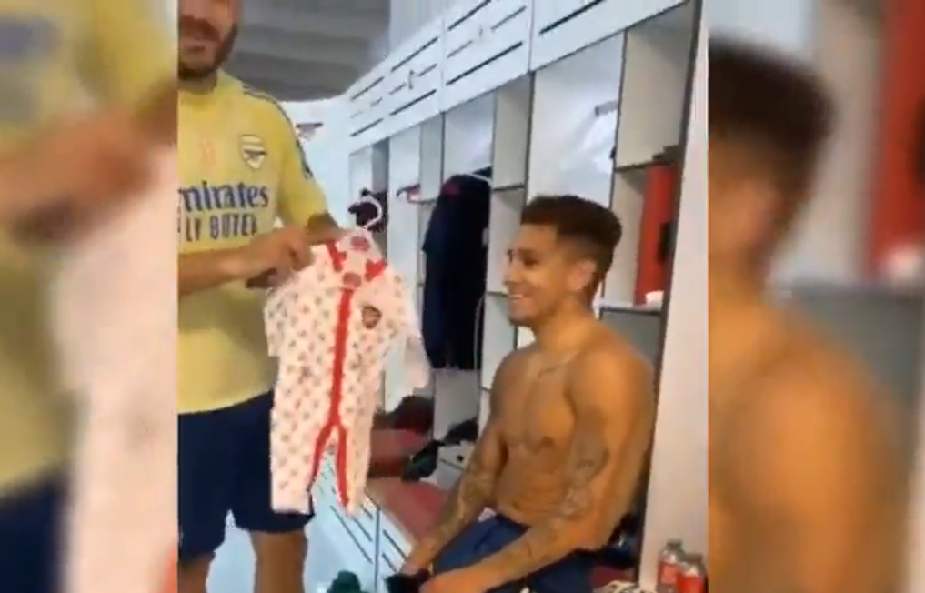VIDEO – Aubameyang “sfotte” Torreira: in regalo una tuta… baby