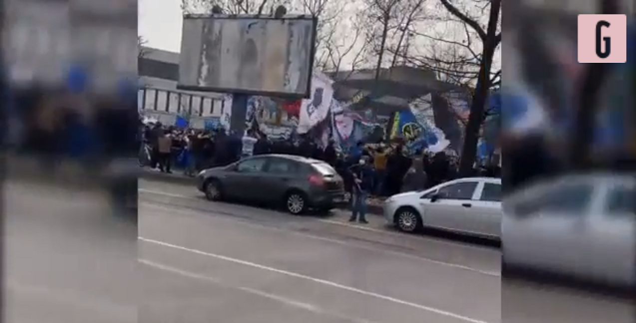 VIDEO – Bandieroni e cori: la carica dei 5.000 tifosi dell’Inter fuori da San Siro